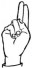 На ћирилици написано ГВОЗДЕНА КАРАВЕСОВИЋ састоји се из 19 слова [?]. Исписано ћириличном једноручном азбуком за глувонеме: